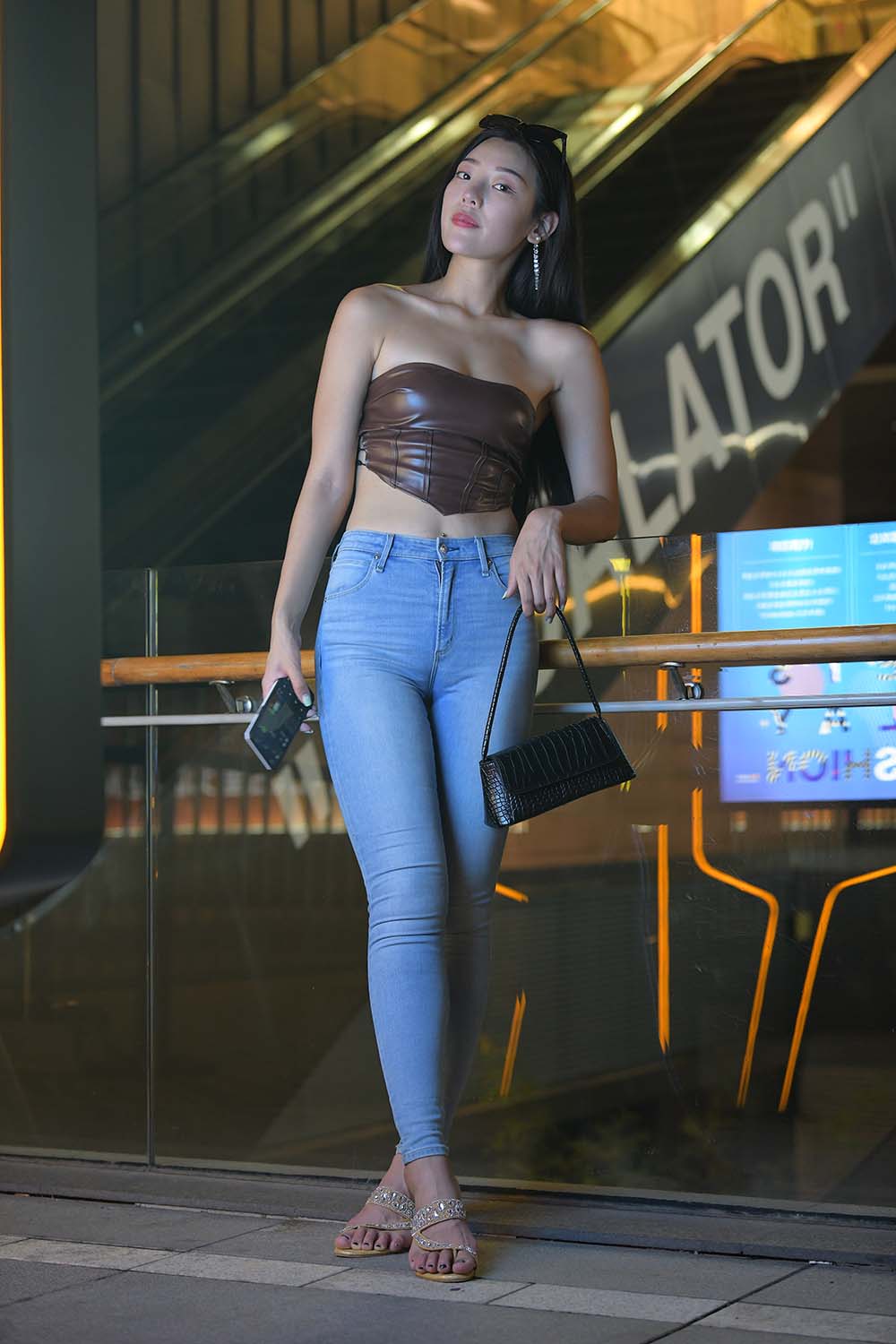 精选街拍作品 NO.1315 一始街拍作品 – 夜拍蓝色牛仔裤美女