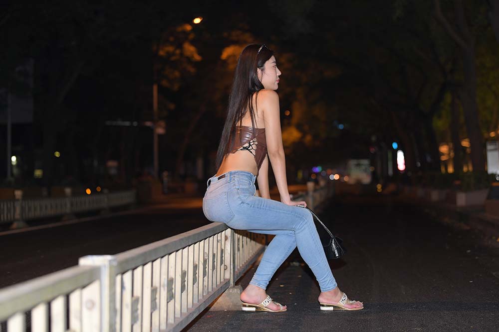 优萌馆 | 魅人堂 » 精选街拍作品 NO.1315 一始街拍作品 – 夜拍蓝色牛仔裤美女