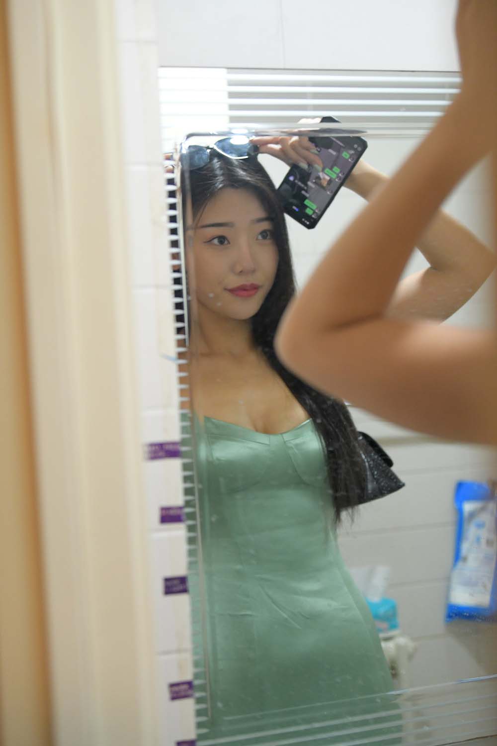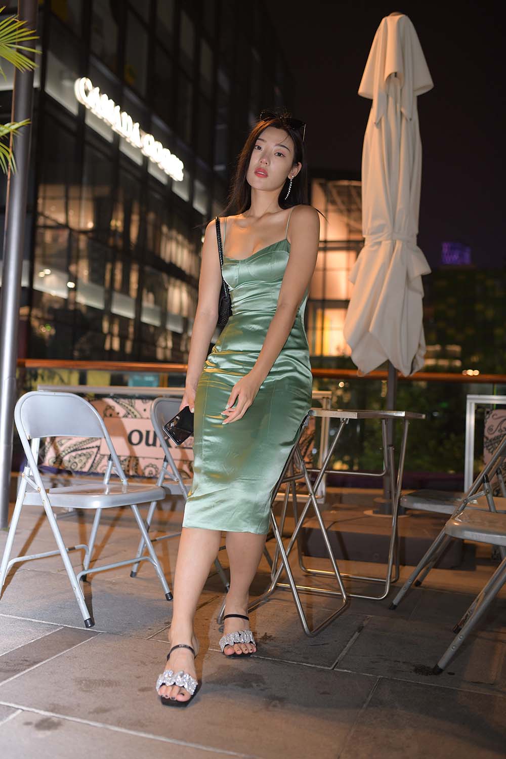 优萌馆 | 魅人堂 » 精选街拍作品 NO.1332 一始街拍作品 – 夜拍绿色长裙美女
