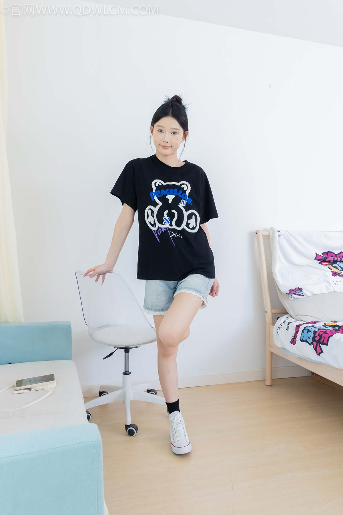 物恋传媒 NO.2324 小竹-匡威帆布鞋、白棉袜、黑棉袜