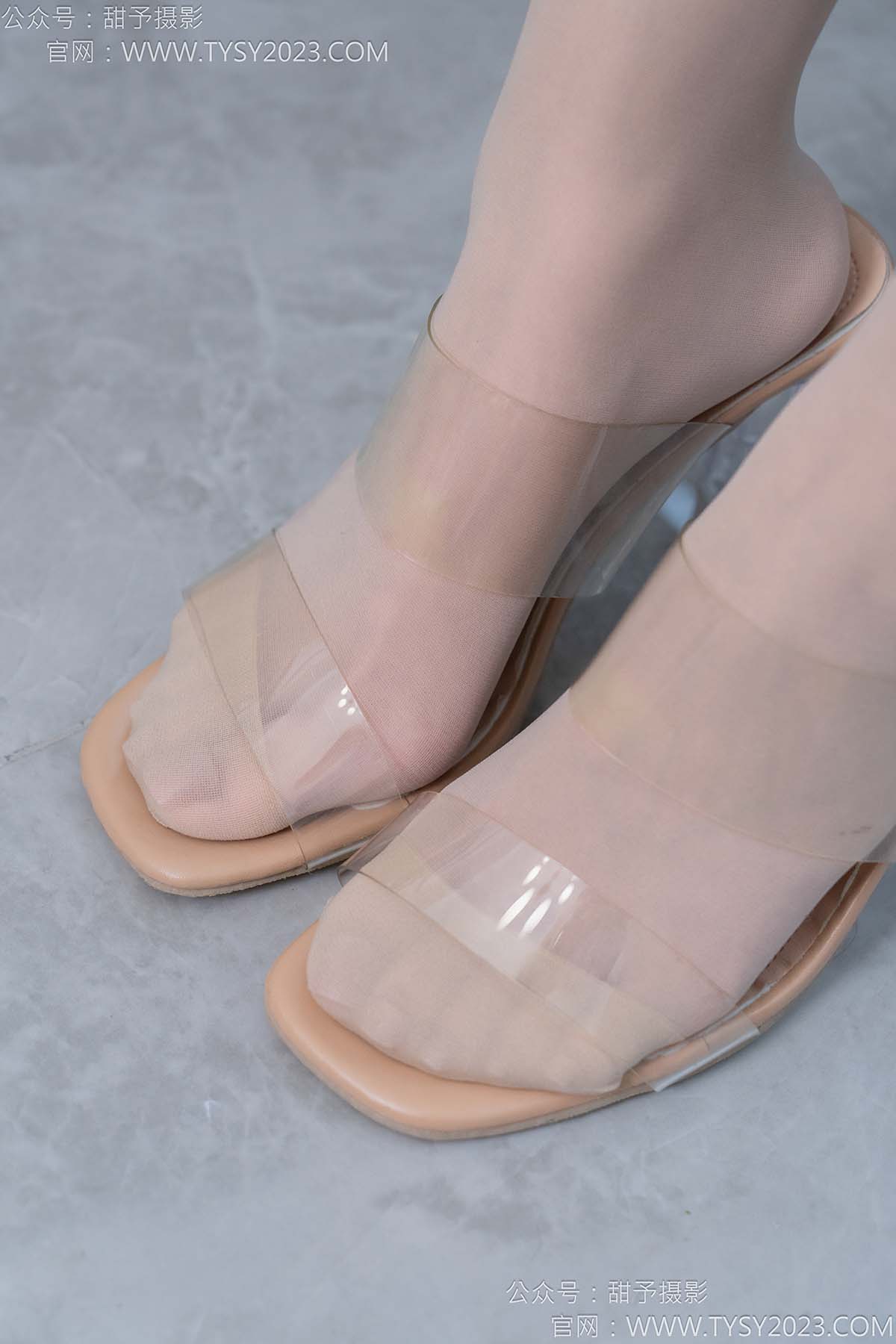 甜予摄影 NO.188 贝壳-透明高跟、高跟鞋、薄肉丝、薄黑丝、裸足