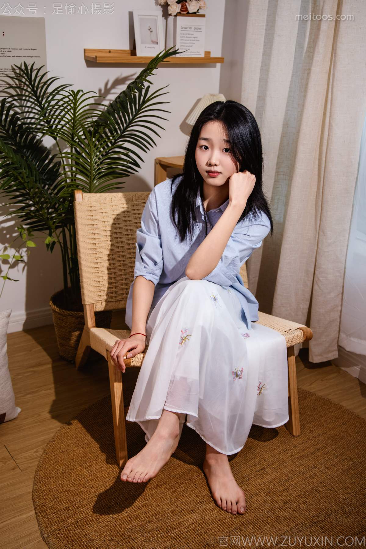 优萌馆 | 魅人堂 » 足愉心 NO.023 奶芙(搭配:蓝色衬衫、白色长裙、帆布鞋、白色棉袜、裸足)